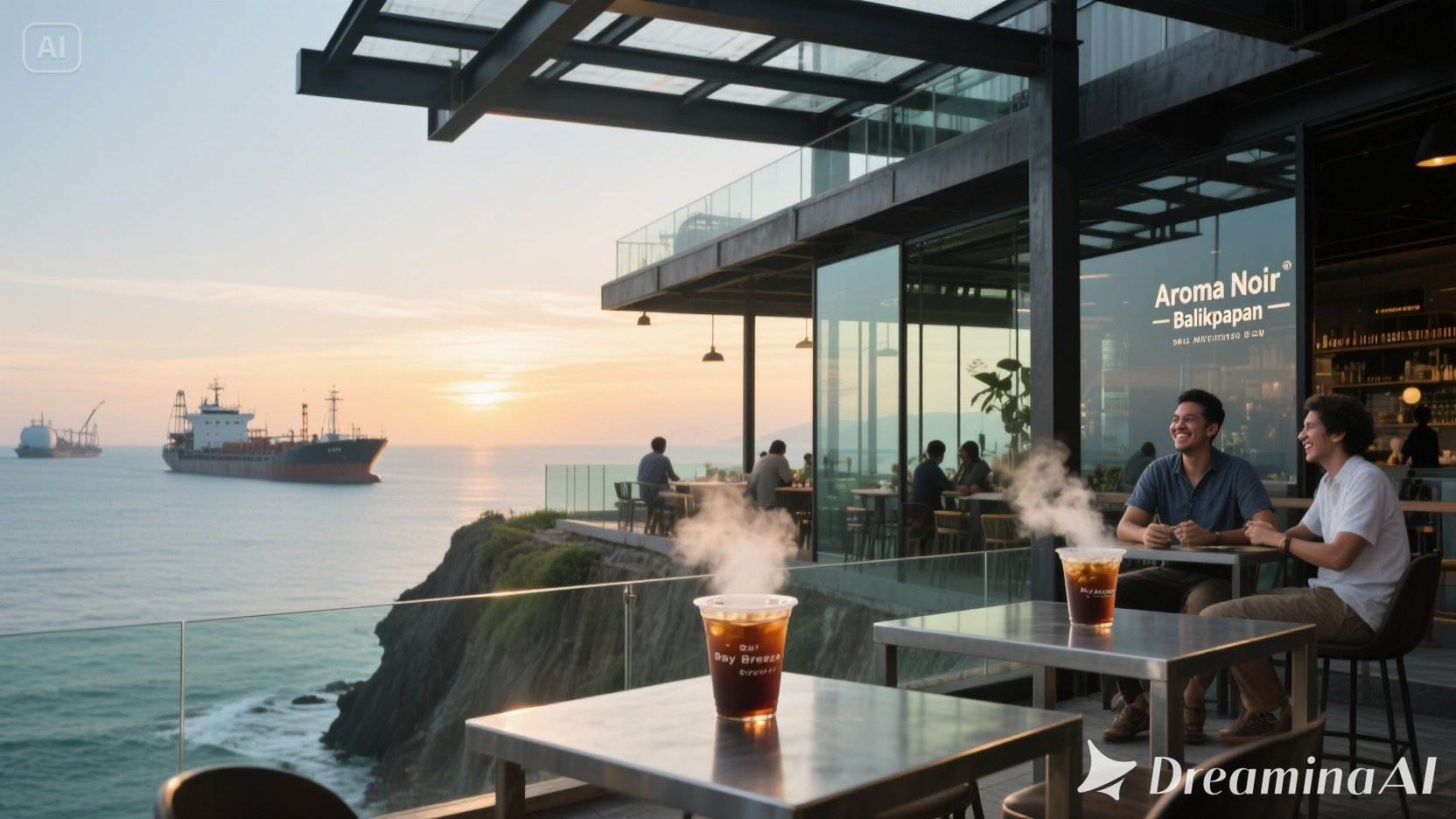 Di atas bukit kecil yang menghadap Teluk Balikpapan, gerai kami menawarkan pemandangan laut yang menenangkan. Desainnya modern industrial — dengan baja, kaca, dan kayu — mencerminkan semangat kota minyak yang dinamis. Banyak pekerja migas dan expat jadi pelanggan setia — mungkin karena kopinya yang konsisten, atau karena view-nya yang bikin lupa sejenak dari tekanan kerja. Nikmati “Bay Breeze Cold Brew” sambil melihat kapal-kapal lewat di kejauhan.