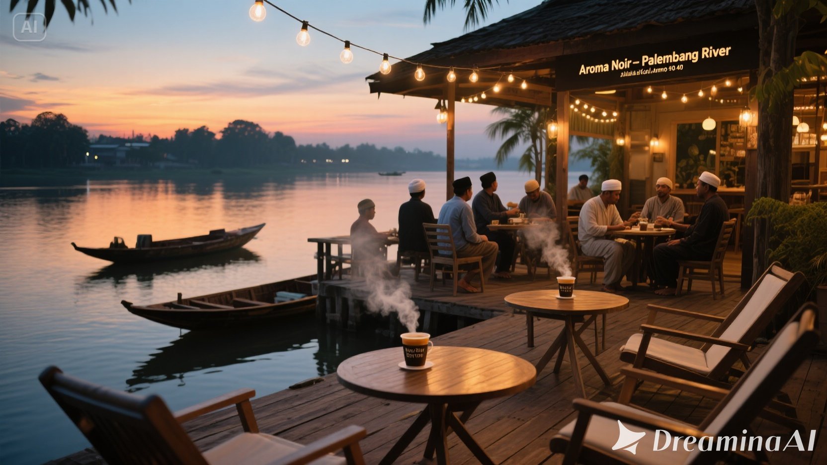 Menghadap Sungai Musi yang legendaris, gerai Palembang kami punya view yang tak terlupakan. Dengan dek kayu outdoor dan kursi santai, tempat ini cocok untuk nongkrong sore atau malam hari. Banyak warga lokal datang setelah shalat Maghrib — menikmati kopi sambil ngobrol santai. Coba “Musi River Brew”, racikan dengan sentuhan gula aren asli Palembang yang manis alami.