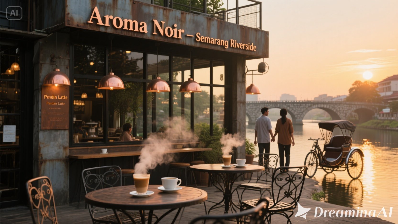 Menghadap sungai kecil yang tenang, gerai Semarang kami adalah tempat terbaik untuk melepas penat. Dengan interior industrial-chic dan lampu gantung tembaga, suasana di sini hangat dan intim. Banyak pasangan memilih tempat ini untuk kencan pertama — mungkin karena cahaya senja yang masuk dari jendela barat, atau karena barista kami yang ramah selalu punya rekomendasi minuman romantis. Jangan lupa coba “Pandan Latte”, racikan khas Semarang dengan sentuhan daun pandan asli.